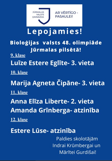 Sveicam godalgoto vietu ieguvējus bioloģijas valsts 47. olimpiādes II posmā!