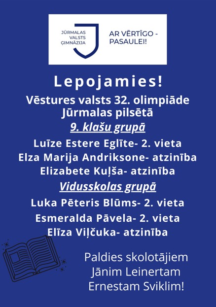 Lepojamies ar godalgoto vietu ieguvējiem vēstures valsts 31. olimpiādes II posmā!