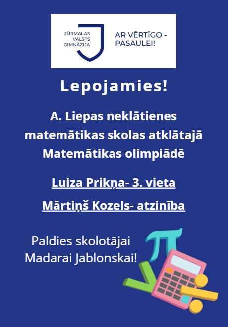 Godalgotas vietas A. Liepas neklātienes matemātikas skolas atklātajā Matemātikas olimpiādē