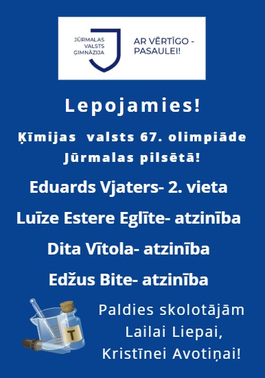 Sveicam godalgoto vietu ieguvējus ķīmijas valsts 67. olimpiādes II posmā!