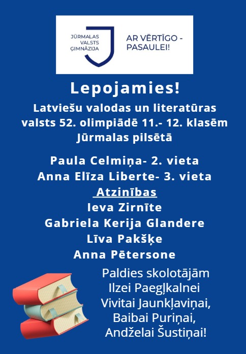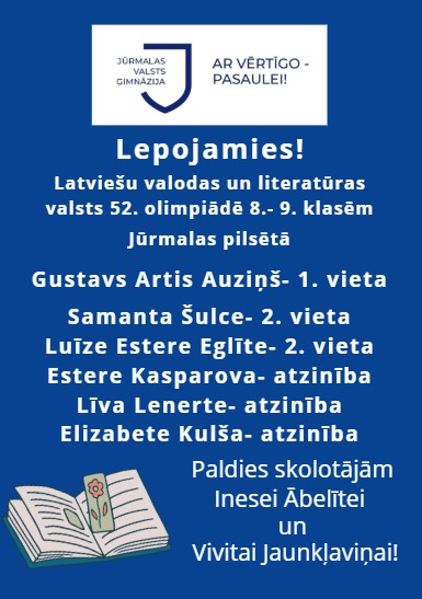 Lepojamies ar sasniegumiem latviešu valodas un literatūras valsts 52. olimpiādes II posmā!