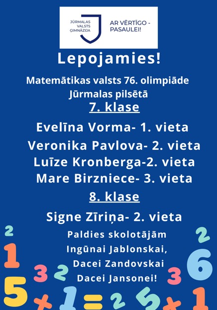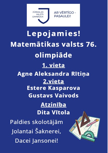 Sveicam godalgoto vietu ieguvējus matemātikas valsts 76. olimpiādes II posmā!
