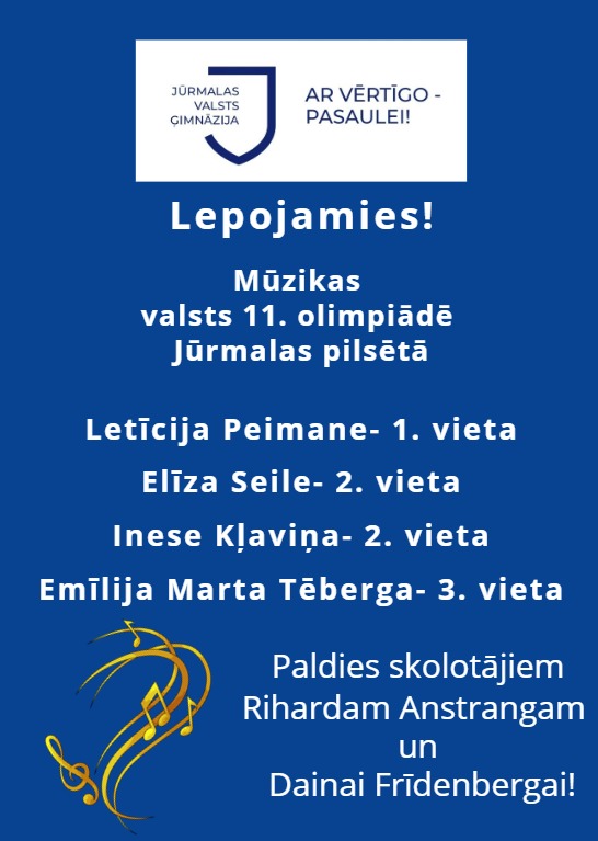 Sveicam godalgoto vietu ieguvējus Jūrmalas Valsts ģimnāzijas atklātajā ģeogrāfijas olimpiādē 7. klasēm!